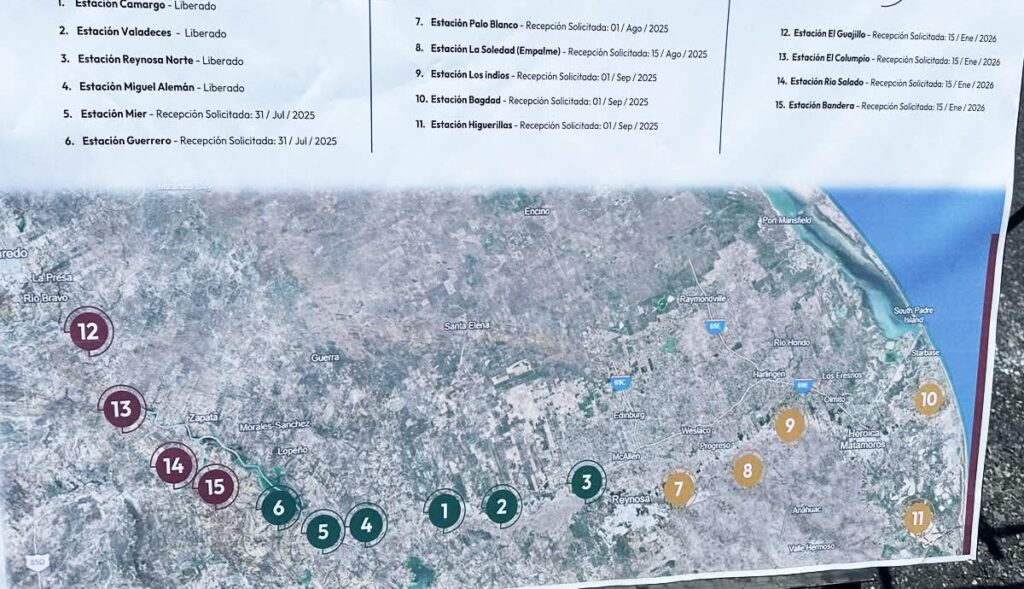 A su vez, de Reynosa a Matamoros se construirán 5 Estaciones: Palo Blanco, La Soledad (en El Empalme), Los Indios, Bagdad e Higuerillas.