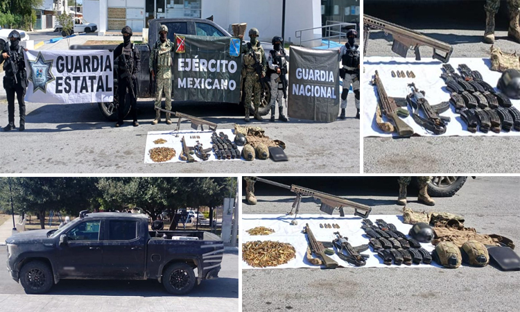 Además, aseguraron un fusil Barrett, 2 armas largas, 39 cargadores, 915 cartuchos, 3 chalecos tácticos, 2 placas balísticas y un vehículo con reporte de robo.
