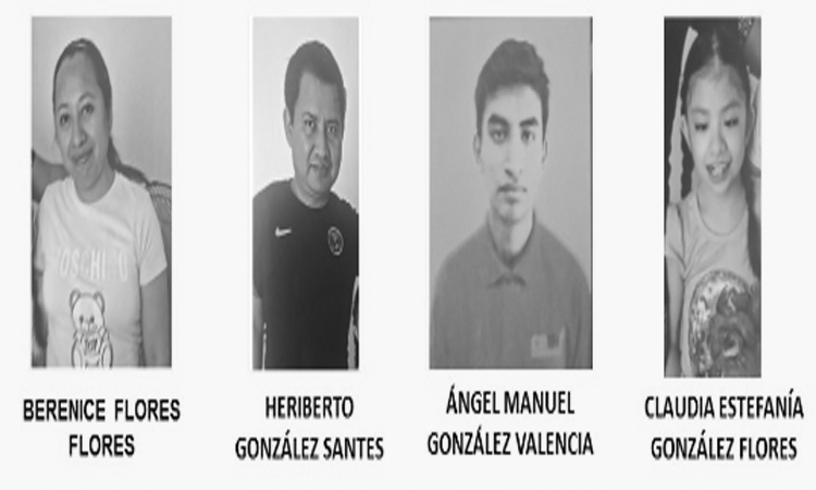 Los 4 integrantes de la familia que fueron victimados fueron identificados como Heriberto González Santés, de 41 años; su esposa Berenice Flores Flores, de 37; su hija con discapacidad Claudia Estefanía González Flores, de 10 años; y su sobrino Angel Manuel González Valencia.